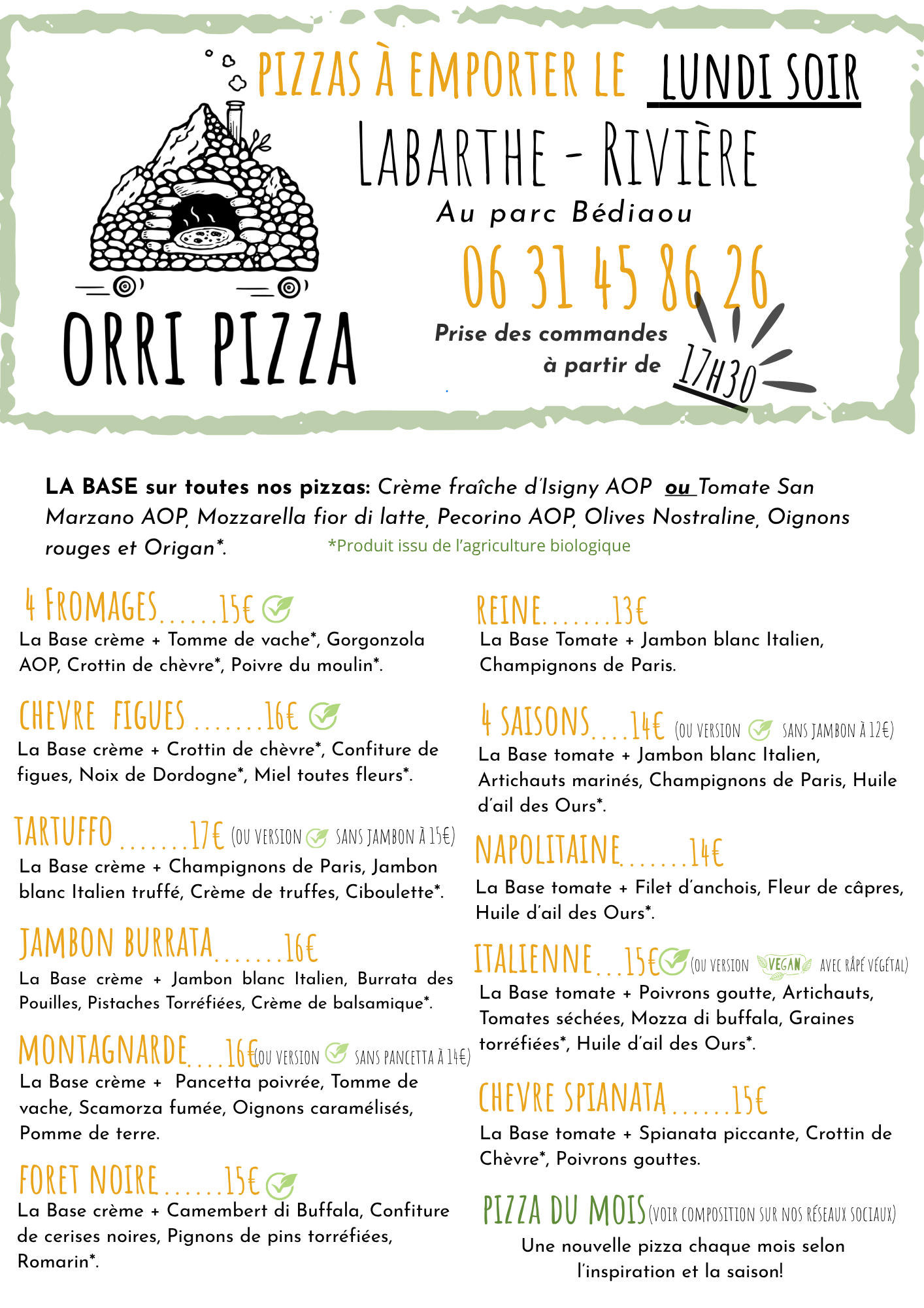 ⏰ Prise de commandes dès 17h30